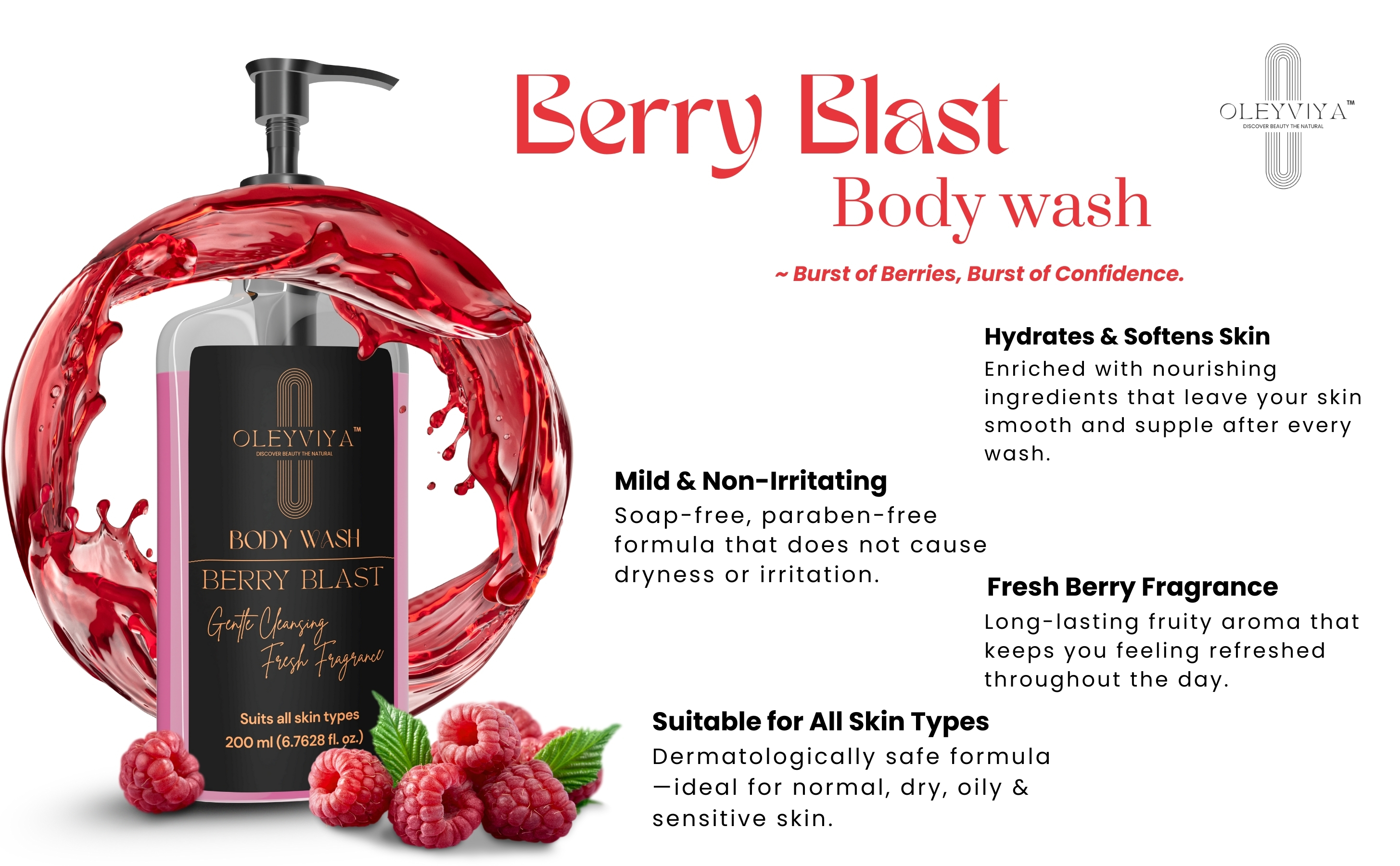 Hydrates & Softens Skin Mild & Non-irritating Fresh Berry Fragrance Suitable for All Skin Type
