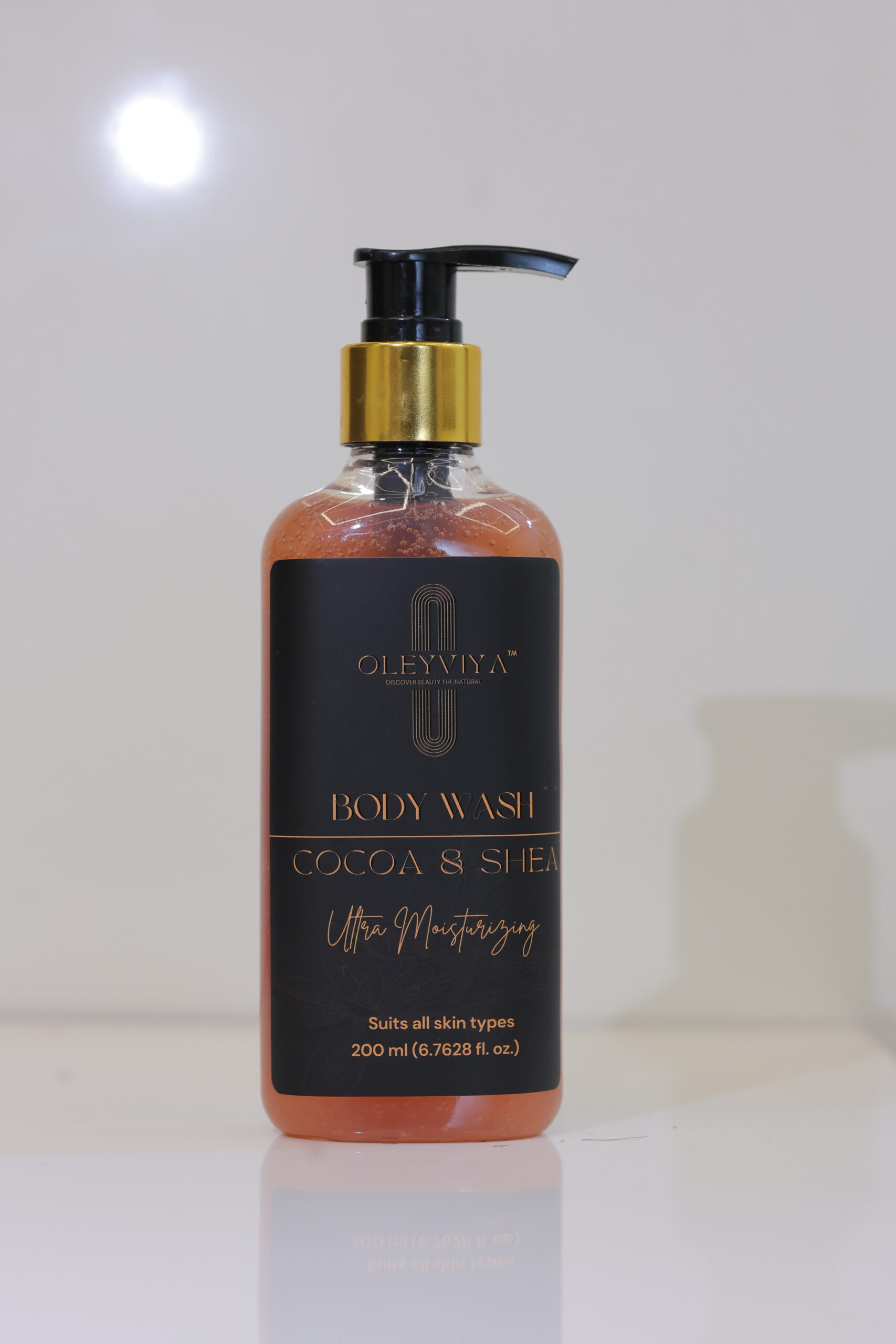 Oleyviya Cosmetic Cocoa & Shea Body Wash blends nourishing cocoa butter and shea butter to hydrate and smooth skin, leaving it soft, supple, and beautifully refreshed.